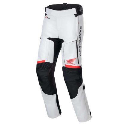 The multi-season season Honda Bogota’ Drystar® Pants are engineered to deliver optimal protection, weather performance and comfort, and utilize Alpinestars’ technical laminated Drystar® liner that provides superior breathability and exceptional wet weather performance. The main fabric of the pants is made from recycled materials and has a DWR (Durable Water Repellent) treatment for effective all-weather performance and superior comfort in any weather conditions, wet or dry. Designed to ensure that the outer shell always stays dry, with the Bogotá pants it’s goodbye to soggy gear. The liner to drop year-round pants are designed for adventure riding and come with a waterproof Drystar® membrane that can be worn either inside or on top of the pants, allowing the pants to be easily configured to the weather conditions. The Honda Bogota’ Pro Drystar® pants are constructed with a lightweight reinforced outer shell that incorporates vect ventilation panels on the thighs for effective climate control in varying weather conditions. Designed with a tailored, ergonomic fit to provide premium comfort and freedom of movement, accommodating all riding movements. The Honda Bogota’ Pro Drystar® Pants feature a lightweight micro ripstop and 1200D polyfabric construction for enhanced durability. The pants are equipped with Level 2 CE Nucleon Flex Pro knee armor and Bioflex hip armor for effective protection against impacts and have an AA CE Rating. The pants have a detachable 100g thermal liner for use in cold weather conditions and are a great four-season adventure touring pant.