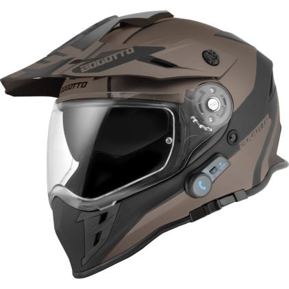 The Bogotto H331 BT is a great helmet by Bogotto for Adventure/Touring riders. Adventure helmets are awesome for those riders that love to ride on a dirt road, but also want to have a helmet that performs well on tarmac. Adventure helmets are known for their comfort, ventilation and versatility. They sport a MX helmet style peak to block sunlight and protect you from roost or low hanging branches and have a larger eyeport to accomodate a pair of MX goggles. If this H331 BT is not the helmet you are looking for, don't worry we have a lot of other Bogotto adventure motorcycle helmets in our collection.