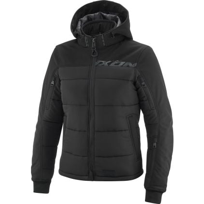The IXON Aspen is a winter-ready roadster motorcycle jacket for female riders that combines sporty, elegant design with functional features. Thanks to the fixed DryMesh membrane, it is waterproof, breathable, and keeps you warm, supported by the removable thermal lining. Fanom® SEKA protectors on the elbows and shoulders offer high protection, while the pocket for an optional back protector provides additional safety. Reflective details ensure better visibility in traffic. The adjustable hood allows for individual comfort, and ventilation zippers ensure effective temperature regulation.