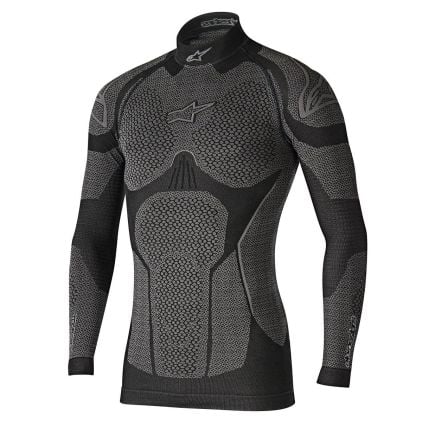 This Black, Grey Alpinestars Shirt has a Temperature regulating function. Temperature regulating Tip! Are you wearing a leather suit or leather motorcycle clothing and can putting it on and taking it off sometimes be a hassle? Then we recommend wearing this Alpinestars base layer. Thanks to the extra layer you’re wearing, the suit won’t stick to your skin and switching clothes will be a piece of cake.