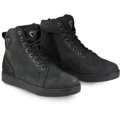 The DIFI Nomad Aerotex Waterproof Motorcycle Shoes are urban motorcycle shoes with an easy-entry zipper. A windproof, waterproof and breathable AEROTEX insert is included. Designed as a lace-up ankle motorcycle boot, they are easy to put on thanks to an extra zip and feature a mesh lining and an anatomically pre-shaped, removable insole. Ankle protection with a foam inlay, reflective inserts on the heel, and an anti-slip, oil- and petrol-resistant sole complete the design.