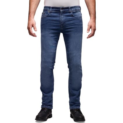 The Rooke Motorcycle Jeans combine the timeless look of classic blue jeans with sophisticated protection for urban use. The modern slim fit ensures a stylish, close-fitting look, while the high-quality 12 oz stretch denim with 3% elastane offers exceptional comfort and optimal freedom of movement. The jeans are reinforced with robust aramid inlays in areas prone to falls, such as the hips, seat, and knees, offering additional safety without compromising on comfort. Thanks to their authentic 5-pocket design, the Rooke jeans are perfect for everyday wear and are also available for children.