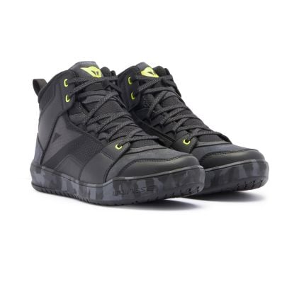 Chaussures urbaines imperméables dans un style basket. Équipée de semelles Groundtrax® au design asymétrique et d’une tige en maille et cuir fendu, adaptée à l’utilisation sur et hors moto.