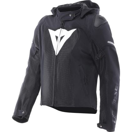 The Dainese Super Sprint Air Ladies Motorcycle Textile Jacket combines sporty design with high wearing comfort and modern functionality. Developed for dynamic riding on asphalt, it is suitable for both city traffic and short to medium-length tours outside urban areas. Thanks to the combination of soft softshell material and strategically placed mesh inserts, it offers pleasant ventilation even on particularly hot days. Visually, the jacket combines the aggressive look of the racing world with a modern, urban style. Striking shoulder plates emphasise its sporty character, while the removable hood and soft materials ensure everyday wearability. This makes the jacket comfortable to wear not only on the motorbike, but also off it. In terms of functionality, the Super Sprint Air impresses with its well-designed features. A waterproof inner pocket protects important items from moisture, while outer pockets allow quick access to personal items. The jacket-trouser connection loop ensures a secure fit while riding, and a special fastening loop reliably secures the hood at higher speeds. For safety, the jacket is equipped with soft, ventilated Pro-Armor protectors on the shoulders and elbows. In addition, it is designed for retrofitting with a back protector and can be worn over the Smart Air airbag system. This allows the protection to be individually adjusted and extended. Thanks to the numerous adjustment options at the neck, waist, cuffs and sleeves, the fit can be optimally tailored to the female anatomy. The breathable inner lining supports temperature regulation and ensures a comfortable fit even on longer rides. The Dainese Super Sprint Air is the ideal choice for riders who want to combine sporty style, everyday practicality and reliable protection in a lightweight summer jacket.