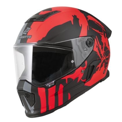 Ein Helm ist wohl das ausdrucksstärkste Kleidungsstück, das ein Motorradfahrer tragen kann. Besonders Integralhelme gibt es in einer Vielzahl von Farboptionen und sogar Replikahelme von Ihren Lieblings-MotoGP-Fahrern. Wenn Sie auf der Suche nach einem Helm in Grau, Rot, Schwarz sind, ist diese spezielle Version des Rapto eine gute Wahl! Er hat ein Grafik Design und eine Matt Lackierung. Gefällt Ihnen der Helm, aber sind Sie einfach nicht in die Farbe verliebt? Wir haben alle verfügbaren Farben des Rapto hier im Lager!