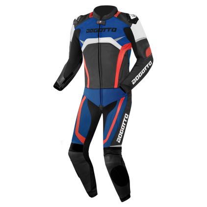 There’s no doubt that you will look sporty and speedy with this Black, Blue, Red, White one piece racing suit. You’re ready to go and hit the road! Is this Bogotto Misano racing suit not the one you’re looking for? No problem, we have enough other Bogotto suits in our collection. Or are you looking for a one-piece racing suit? Check out our collection of motorcycle suits to see if there’s one to your liking.