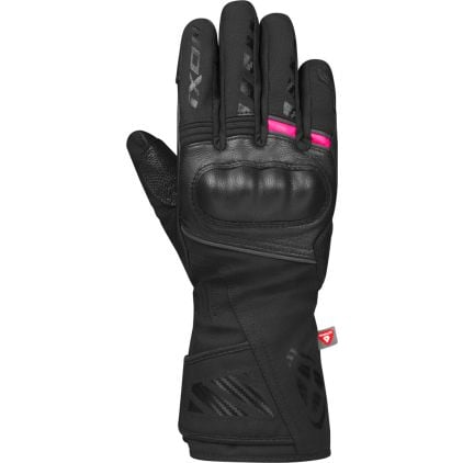 The gloves are constructed from Goat leather, Nylon, combined with a Fixed waterproof membrane ensures water resistance in bad weather. Its Knuckle protector, Palm slider provide ample protection in the case of a slide. These gloves are fitted with a Velcro closure for easy and secure fastening. These particular gloves come in the color Black, Pink. If you’re looking for a different pair of gloves, we have plenty more Ixon motorcycle gloves available.