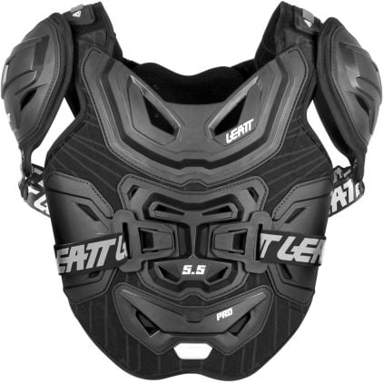The hard shell 5.5 Chest Protector Pro is lined with 3DF AirFit impact foam that is CE certified and offers chest, back, and shoulder protection.3D multi-layer, multi-plate articulating design that proves to be comfortable as well as ventilated with 53 ventilation slots and works with or without a Leatt Neck Brace.Next step up in protection level is the 5.5 Pro HD or 6.5 Pro Chest Protector.