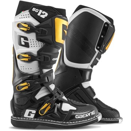 Las botas de moto Gaerne SG-12 forman parte de la colección de botas motocross de ChromeBurner. Motoristas de motocross y enduro tienen su propia lista de cosas para los que necesitan su equipamiento. Conducir su moto en condiciones difíciles, saltando y deslizándose, le hace propenso a las lesiones. Por eso necesita el equipo adecuado para protegerse. Le conviene invertir en un par de botas de motocross protectoras y resistentes que sean capaces de absorber los impactos y evitar que sus piernas se muevan en direcciones que no desea. Si no le gusta esta Bota Motocross, simplemente eche un vistazo a nuestras otras botas offroad de Gaerne.