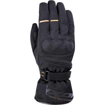 Los guantes están construidos con Piel de cabra, Poliéster, combinados con una membrana impermeable Fija que garantiza la resistencia al agua en caso de mal tiempo. El Protector de nudillos proporciona una amplia protección en caso de deslizamiento. Estos guantes disponen de un cierre con Velcro para más comodidad y seguridad. Estos guantes vienen en el color Negro, Oro. Si necesita otro par de guantes, tenemos muchos más guantes de moto de Ixon disponibles.
